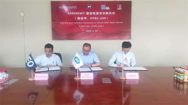 2020年5月22日,韓通船舶重工為德國船東Oldendorff建造的82K散貨輪 “GLAD YOUNG”(船體號:HT82-239)成功簽字交船。