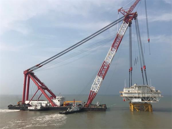 海洋水建成功安裝龍源射陽H2海上升壓站