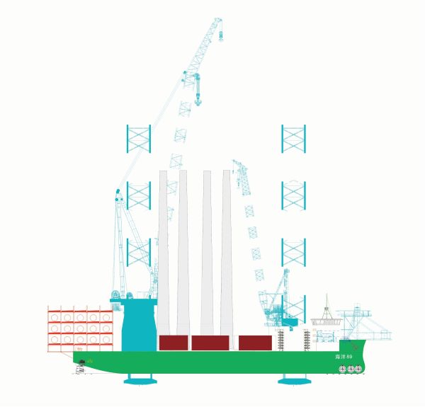 由海洋水建投資、中船708研究所設(shè)計(jì)、新韓通船舶重工建造的國內(nèi)第四代海上風(fēng)電施工裝備 “海洋風(fēng)電89”,通過三方共同努力,在總結(jié)以往海上風(fēng)電施工裝備的使用性能、各類品牌風(fēng)機(jī)及海況地質(zhì)適用性及未來海上風(fēng)電發(fā)展趨勢規(guī)劃的基礎(chǔ)上,充分考慮起重能力、性能與效率、海域海況、水文地質(zhì)等多方面,滿足國內(nèi)、國外海上風(fēng)電未來、單機(jī)大容量、深遠(yuǎn)海施工特點(diǎn),于2021年9月完成了第四代海上風(fēng)電施工裝備、設(shè)計(jì),“海洋風(fēng)電89”計(jì)劃于2022年12月交付投入使用。這是海洋水建主動(dòng)適應(yīng)“十四五”、“十五五”的國家新能源戰(zhàn)略需要,為未來深遠(yuǎn)海海上風(fēng)電建設(shè)再添利器。