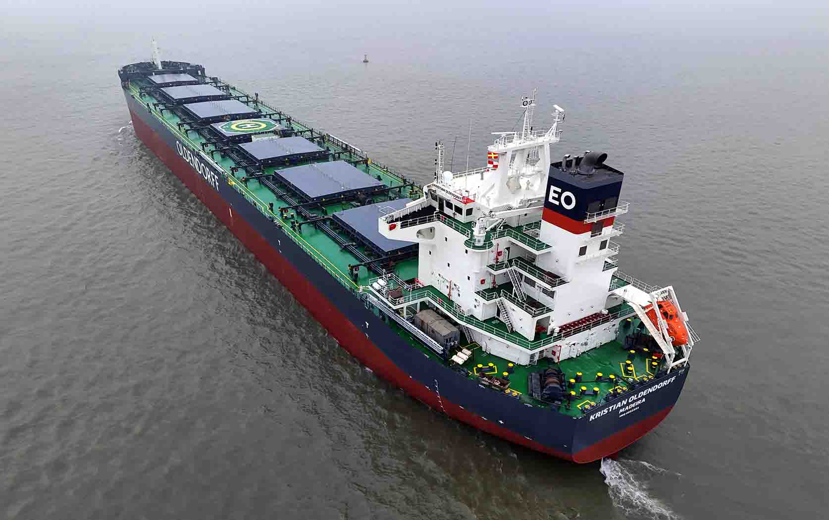 2024年2月1日,韓通為德國船東OLDENDORFF建造的82000噸散貨輪 “Kristian Oldendorff”(船體號:HT82-275)順利簽字交付,HT82-275是系列船中的第11艘,也是順利交付給OLDENDORFF的第30艘船舶,入LR船級社。該船總長229米,型寬32.26米,型深20.35米,設(shè)計(jì)吃水12.2米,設(shè)計(jì)航速14.0節(jié),具有油耗低、綠色環(huán)保、適應(yīng)性能強(qiáng)、節(jié)能高效等諸多優(yōu)點(diǎn),屬于目前航運(yùn)市場主流的散貨船船型。